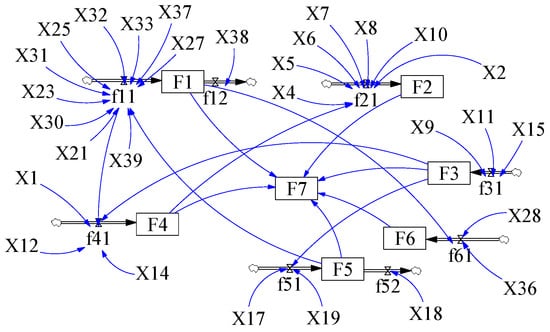 According to the cause–effect diagram in Section 3.2, combined with the set variables and six subsystems, the stock–flow diagram of SD model is drawn as shown in Figure 6.