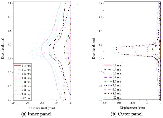 Lateral displacement of door panel at different times.