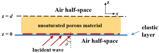 Sound wave incident into an unsaturated porous elastic plate bonded with a solid layer on the bottom.