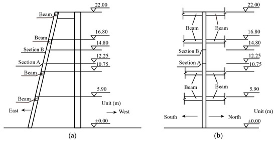 To facilitate a clearer analysis of the column’s strains, Section A and Section B in the middle of the middle story were selected to arrange strain gauges, as shown in Figure 2.