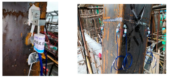The strain characteristics of an inclined CFST column (Figure 1) were investigated during its construction in this study. The column was 700 mm × 700 mm in cross-section and 22 m in height. The nominal ultimate compressive stress of the concrete was 20.1 MPa. The nominal yield stress of the steel was 235 MPa.