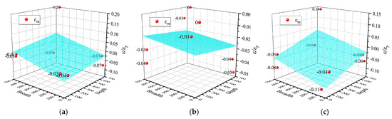 Figure 9. Three-dimensional plane fitting of strains in Section B in each state. (a) After concrete pouring; (b) Before removing scaffold; (c) After removing scaffold.