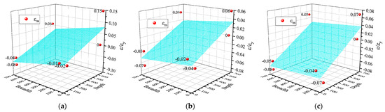 The three-dimensional plane fitting of the strains in Section B in each state is shown in Figure 9, where the same fitting method as Section 4.2 is used. The measured strains εm and the desired strains following the plane section assumption εd are compared in Table 2. The deviation rate is shown in Figure 10.