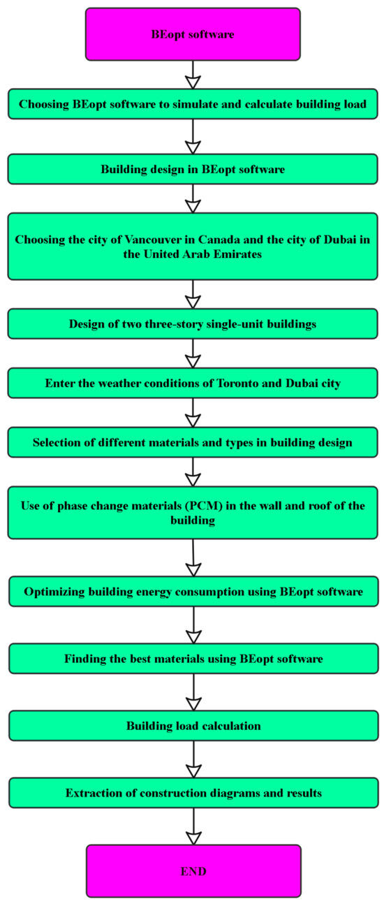 BEopt software 3.0.1 is a building energy optimization tool used to evaluate buildings. In BEopt, simulation is performed based on a building’s dimensions, architecture, number of residents, location, and facilities.
