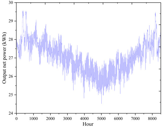 In Figure 20, the changes in the net production power of the entire study system are shown hourly in response to the changes in weather parameters. As the ambient temperature increases, the performance of the organic Rankine cycle decreases, and the best performance of the system is achieved in winter and spring.