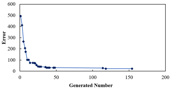 The GA uses design variables, which are coded as real numbers, and is adopted for the optimizing formulation. For detecting equations and hidden mathematical relationships in raw data, the GA uses a symbolic regression [88]. One key advantage of GA is its ability to find the global extreme value without being confined to a local extreme value (i.e., maximum or minimum extreme value). The GA process initiates from a search process, including multiple raw data points in the search space. In addition, it will include mutation operators that will generate search points away from the high fitness region. This will help avoid any search points being trapped within a local extreme value [33]. The GA has been reported by past scholars [33,89,90] to be efficient in determining the optimal solution in similar complex engineering optimization problems, and more information regarding the GA can be seen in past studies [91,92].
