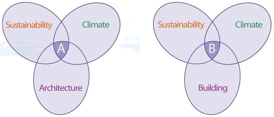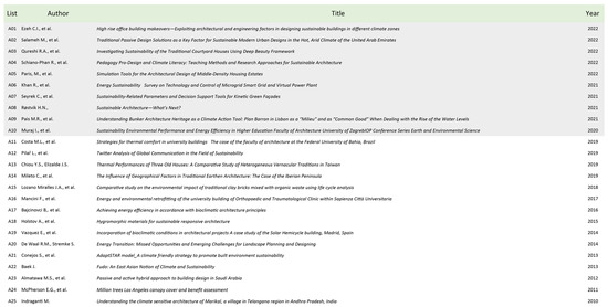 List A—intersection of the sustainability–climate–architecture keywords [29,30,31,32,33,34,35,36,37,38,39,40,41,42,43,44,45,46,47,48,49,50,51,52,53].