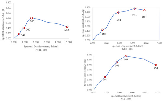 Spectrum capacity of the NEBs with points representing Sa or Sd in various damage states.