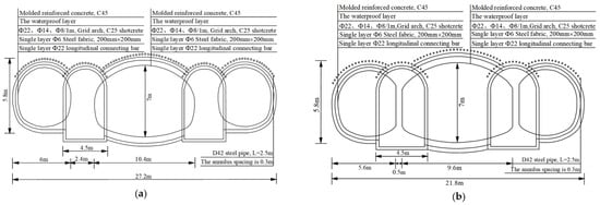 - Chen, Z.Q.; He, C.; Xu, G.W.; Ma, G.Y.; Yang, W.B. Supporting mechanism and mechanical behavior of a double primary support method for tunnels in broken phyllite under high geo-stress: A case study. Bull. Eng. Geol. Environ. 2019, 78, 5253–5267. [Google Scholar] [CrossRef]