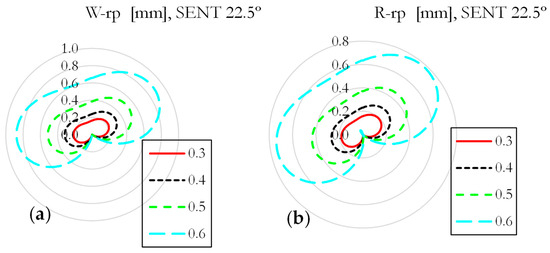 Size and shape of the plastic zone for the SENT sample 22.5°: (a) from the W criterion and (b) from the R criterion.