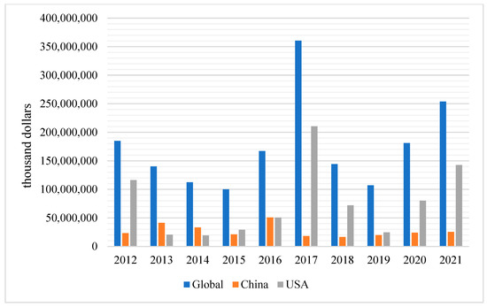 Yearly direct economic losses due to environmental disasters; date resource: https://www.gddat.cn/newGlobalWeb/#/NationalScale (accessed on 20 June 2023).