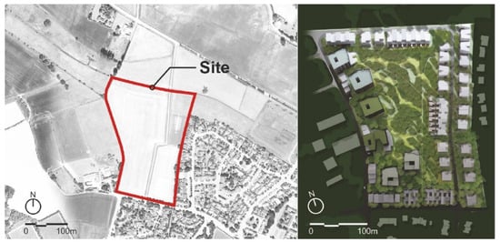 This study selected the 5.2 ha area of Trémelière in Le Rheu Commune, which has an important urban planning history from the perspective of France’s garden city, as the research subject. The main purpose of the site was to plan residential spaces for 234 households. The specific urban regulations that apply to this site include securing a minimum greenspace ratio of 30% and a building-to-land ratio of less than 30%, which are the most important elements of Le Rheu’s urban planning [56]. The urban planning regulations applied to this site indicate that the garden city urban planning concept remains the basis of urban space planning in Le Rheu.