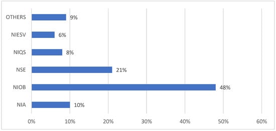 Figure 3 shows the respondents’ professional affiliations. 48% (87) of the respondents are affiliated with the Nigerian Institute of Building (NIOB), 21% (38) are affiliated with the Nigeria Society of Engineers (NSE), 10% (18) are affiliated with the Nigerian Institute of Architects (NIA), 8% (14) are affiliated with the Nigerian Institute of Quantity Surveyors (NIQS), 6% (11) are affiliated with the Nigerian Institution of Estate Surveyors and Valuers (NIESV), and the last 9% (16) are other professional affiliations such as Project Management Professional (PMP) and Nigerian Institute of Town Planners (NITP), among others.
