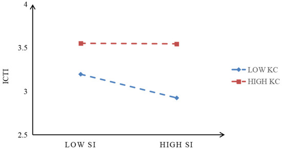 The knowledge base view emphasizes that knowledge is a company’s most strategic resource. Inter-company collaboration is an effective way to integrate knowledge across company boundaries [29]. The knowledge base of the company consists of the set of knowledge elements it owns and the relationship between the knowledge domains of these elements. Innovation involves reorganizing knowledge elements within the knowledge base [78]. Exploiting different links between knowledge elements can help companies achieve technological differentiation [79]. The concept of “coupling” originated from physics. In organizational management, coupling emphasizes the degree of interaction and interdependence between systems or elements [80]. Previous studies have defined KC as the degree of combination of knowledge elements from different domains, or as a dynamic complementary relationship with fit characteristics. Drawing on Yayavaram, S.’s viewpoint [81], this study defines KC as the process in which different knowledge elements owned by different knowledge agents obtain synergy and overflow diffusion through dynamic association, mutual fit, and effective complementarity. A high level of KC implies strong connections between knowledge elements of different agents, giving them great potential to integrate internal and external knowledge for technological innovation. Meanwhile, based on the findings of Huang, L. [37] and Jin, N. [82], there was an inverted U-shaped non-linear relationship between KC and green innovation in manufacturing companies. Changes in KC have an inverted U-shaped impact on a company’s innovation performance, and changes in existing knowledge or coupling of existing knowledge with new knowledge within a company have a direct positive impact on a company’s innovation performance. ICT is often built based on building industrialization (prefabricated building). Therefore, it requires the cross-border, deep integration of modern information technology with intelligent technology as the core and advanced construction technology led by industrialization, which is a typical KC process. This study proposes the following hypotheses: