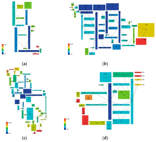 Visual field maps: (a) “1946” Creative Industrial Park; (b) “3526” Creative Factory; (c) Cotton 3 Creative Block; (d) C92 Creative Cluster.