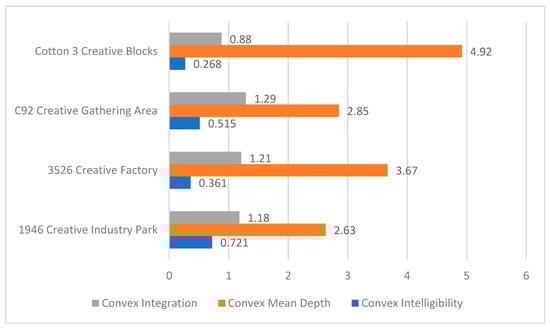 Convex intelligibility analysis chart: (a) “1946” Creative Industrial Park; (b) “3526” Creative Factory; (c) Cotton 3 Creative Block; (d) C92 Creative Cluster.