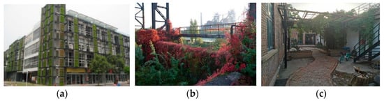 Vegetation greening in the parks: (a) Nanhai Yiku Creative Industrial Park; (b) Landschaftspark Duisburg-Nord; (c) C92 Creative Cluster.