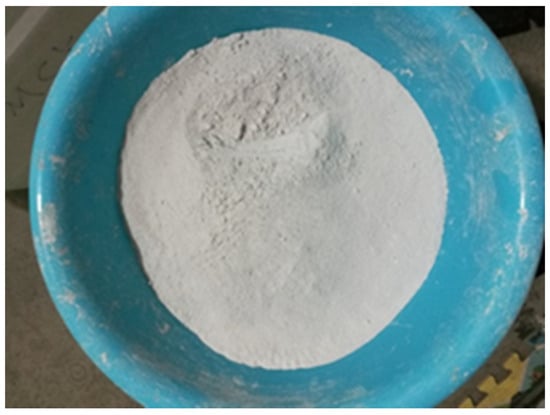 Waste glass, after cleaning, drying, and crushing, was passed through a 0.5 mm standard sieve. Glass particles of size less than 0.5 mm were washed and dried, then put into a WZM-type horizontal ball mill for ball milling. Milling times of 4 h, 8 h, 16 h, and 24 h produced ground glass powder of varying dimensions. The apparent morphology of the waste glass after milling is shown in Figure 2.