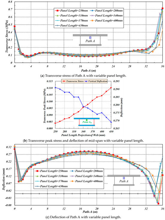The effect of panel length on the transverse stress and deflection of Paths B and C.
