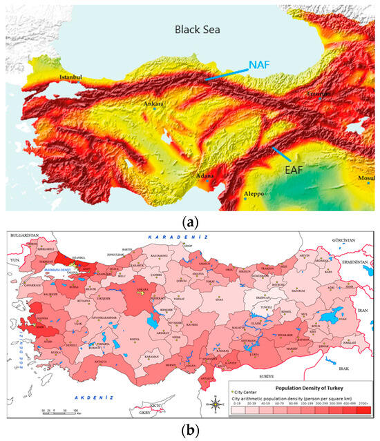 (a) Earthquake hazard map of Türkiye [3], (b) Population Density Map of Turkey.