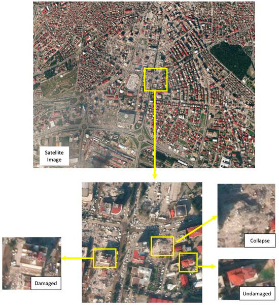 The study aims to identify collapsed buildings following earthquakes using DL techniques. Satellite images from the southern and southeastern regions of Turkey, spanning eleven provinces (Kahramanmaraş, Hatay, Gaziantep, Adıyaman, Malatya, Diyarbakır, Şanlıurfa, Kilis, Osmaniye, Adana, and Elazığ) heavily affected by the Mw 7.7 Pazarcık (Kahramanmaraş) and Mw 7.6 Elbistan (Kahramanmaraş) earthquakes, were utilized for this purpose (see Figure 7).