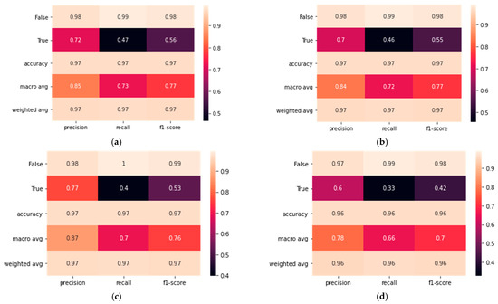 Figure 13 has been designed to convey the comparative performance of the U-Net, LinkNet, FPN, and PSPNet models across several key metrics. These metrics, namely precision, recall, and F1 score, are critical indicators of a model’s ability to accurately classify data points in the context of image segmentation. The ‘True’ row under each model represents the true positive rate, indicating the model’s success in correctly identifying positive cases. Conversely, the ‘False’ row signifies the false positives rate, showing how often the model incorrectly identifies a negative case as positive. Accuracy is represented as a single value for each model, reflecting the overall rate of correct predictions out of all predictions made. The macro average is presented to reflect the unweighted mean of the precision, recall, and F1 scores across the classes. This average is useful for understanding the model’s performance across the dataset without giving additional weight to any class. In contrast, the weighted average accounts for the imbalance in the dataset by considering the number of samples in each class. This gives us insight into how the model’s performance is influenced by the prevalence of each class in the dataset.