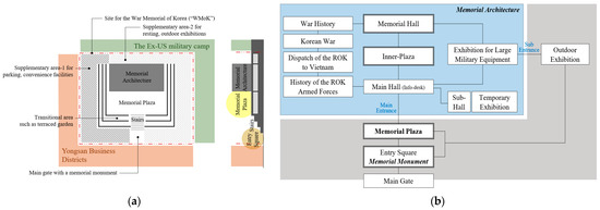 21]. This is because it is used to elicit collective identification, provide shared perspectives on understanding the past, and suggest a better way of looking at the future. Seventy years have passed since the Korean War began, and the war generation has been dramatically outnumbered by the postwar generation. This trend is expected to accelerate over the next decade. However, it is expected that the WMoK will serve as a cornerstone to conserve and represent collective memories through spatial configuration, and to provide a shared perspective on the past through distinctive spatial sequences.