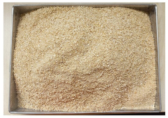 For use in this research, the maize cob sample was reduced in size to obtain particles with two different particle granulometries (G1 and G2), as shown in Figure 3. These were exposed to the environment for 12 h and then subjected to a drying process in an oven at a temperature of 98 °C ± 2 °C for six hours, until they reached a constant weight.