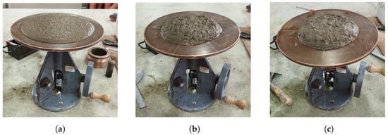Fluidity of mortars. (a) PM. (b) SCC-G1-5%. (c) SCC-G1-10%.