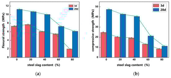 Effects of steel content on mechanical properties of cementitious materials: (a) flexural strength; (b) compressive strength.