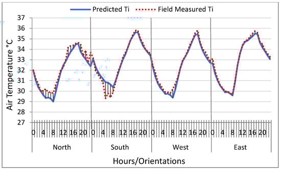 Validation of measured-to-predicted Ti (°C) for the four façades.