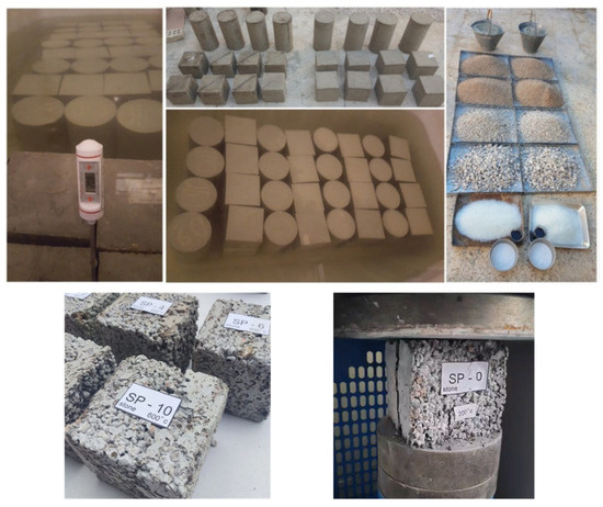 Taking into account the compressive strength, tensile strength, and weight loss of specimens, it is evident that the mixture design incorporating 6% glass powder offers superior performance. To further assess the wall, blocks made of SP-6 were fabricated and subjected to testing, as elaborated upon in the subsequent sections.