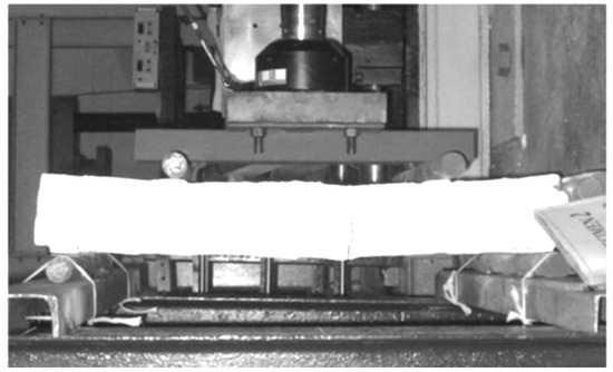 Due to a significant reduction in the out-of-plane (OOP) strength of walls after exposure to fire, a test was conducted on a wall subjected to OOP loading following a temperature of 900 °C. The behavior of the wall was evaluated using a block containing 6% glass powder (GP) under OOP loading conditions. The choice of 900 °C was dictated by the limitations of the testing equipment. The tests were conducted on walls measuring 1000 × 1000 mm, as illustrated in Figure 9. A pure moment was applied at each length, accounting for ¼ of the total wall length, up to the wall’s ultimate failure. Throughout the loading process, deflection was monitored using attached strain gauges at the mid-length of the wall.
