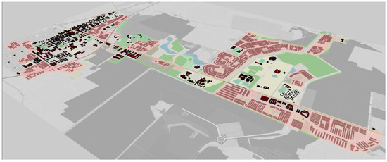 The software generated 3077 building models, encompassing a total gross floor area (GFA) of 3.66 km2. Figure 1 below displays the proposed digital twin city model of Bertam generated in the simulation software.
