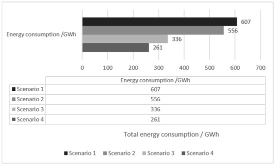 Following the baseline data, the digital twin city model was simulated for Scenario 2. As a result, the residential total energy consumption and carbon emissions of the digital twin city reduced to 556 GWh and 288,013 tCO2e, respectively. Table 5 presents the energy breakdown for Scenario 2. Notably, there was a reduction in energy consumption for cooling and auxiliary purposes, accumulating to 67% of the total energy use in the residential area. Thus, following the decrease in the U-value of building envelopes, iCL-iCD projected the energy and carbon savings of 8.4% for Bertam’s residential areas.