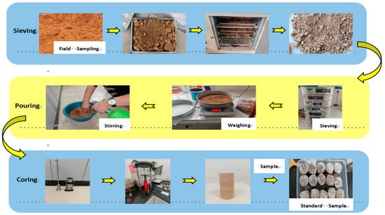 14]. Furthermore, selected samples with the best proportions are subjected to dry–wet cycle experiments following previous tests. Finally, scanning electron microscopy (SEM) analysis is employed to examine the microstructure of solidified soft soil and elucidate the mechanism behind this composite coagulant’s efficacy. This approach effectively contributes towards environmental protection by utilizing waste materials while expanding options for road construction materials.