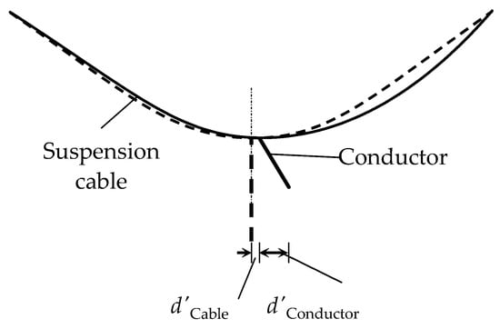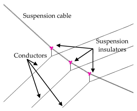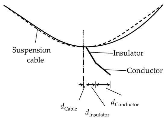 Also, the sag of the suspension cable was calculated by Equation (11), in which was half of one span for a conductor.