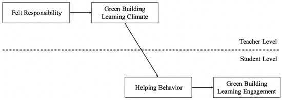 This research transcends the traditional “teacher–student” dichotomy in higher education research perspectives. Drawing from social cognitive theory, it analyzes how the characteristic of felt responsibility among university instructors can enhance student engagement in green building learning. This study delves into this role process in-depth, elucidating the pathways through which student-level helping behaviors and teacher-level green building learning climate influence the relationship between instructors’ felt responsibility and students’ engagement in green building learning. These mechanisms are integrated into a comprehensive cross-level research framework. Through in-depth investigation and addressing related questions, this research aims to improve the effectiveness of green building courses for college students and offer valuable insights for the development of green building teaching theories.