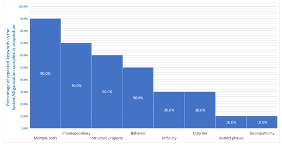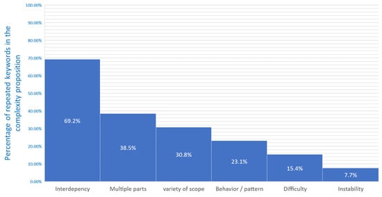 The used keywords in the definitions of organizational and system complexity were analyzed. The results of the analysis of the keywords are shown in Figure 4. The figure shows that “multiple parts and components” was the most used keyword while defining complexity, followed by having interdependency between these parts.