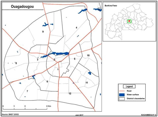Map of Ouagadougou and its 12 districts (adapted from [39]).