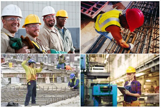 - Kelm, A.; Laußat, L.; Meins-Becker, A.; Platz, D.; Khazaee, M.J.; Costin, A.M.; Helmus, M.; Teizer, J. Mobile passive Radio Frequency Identification (RFID) portal for automated and rapid control of Personal Protective Equipment (PPE) on construction sites. Autom. Constr. 2013, 36, 38–52. [Google Scholar] [CrossRef]