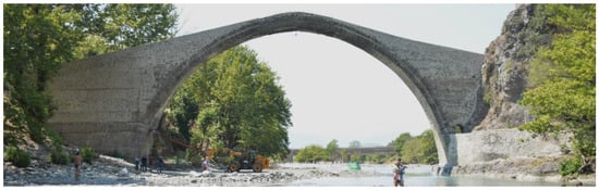 - Palieraki, V.; Oikonomopoulou, E.; Nikolopoulou, V.; Vintzileou, E.; Giannelos, C. The Historical Bridge of Konitsa-Epirus, Greece: Documentation of the Structural System. Int. J. Archit. Herit. 2022, 17, 1446–1463. [Google Scholar] [CrossRef]