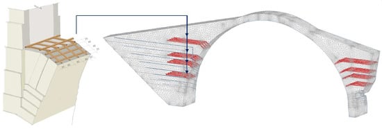 4.3. Timber Elements in the Abutments and in the Arch
