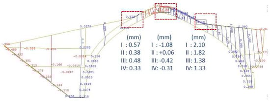Phase 4—additional vertical deformations after the 1913 repair of the arch.