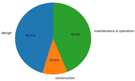 Distribution of construction stages applied with digital twin technologies.
