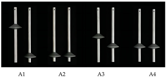 A single half-section NT-CEP pile model was used to reduce the actual pile body with a 1:40 ratio and convert it into a half-section form. The main purpose of this test is to observe the change of soil failure state around piles. In pile foundation engineering, under the condition that the construction quality can be guaranteed, the pile body itself will hardly be damaged before the soil body. To ensure that the pile body will not be damaged in the test, the pile body material is aluminum alloy. Compared with other metals, the stiffness and elastic modulus of aluminum alloy are less different from those of concrete, and its price is relatively low. The detailed dimensions of the pile body are shown in Figure 2 and Table 1. The four cases of NT-CEP model piles manufactured for this study are shown in Figure 3.