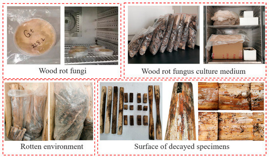 Some researchers have also investigated the degradation of small-sized wood specimens to infer the degradation of full-sized specimens’ mechanical properties due to decay. However, owing to the presence of size effects, there are considerable distinctions between the degradation patterns of small-sized specimens and those of full-sized specimens.