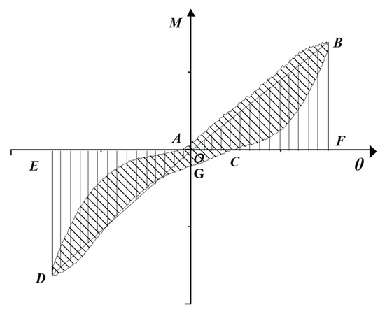 In the formula, E is the energy dissipation coefficient; SABC and SADG are the envelope area of the hysteresis curve, which is the shaded area in Figure 18; SΔDEO is the area of ΔDEO, and SΔDEO is the area of ΔBFO, which is the ideal elastic energy dissipation performance of HHMTJ.