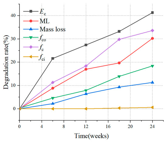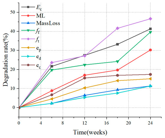 3.3. Strength and Stiffness Degradation