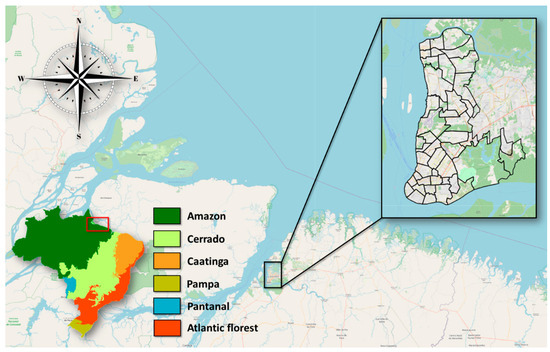- SEGEP. “Aspectos do Município de Belém”, Secretaria Municipal de Coordenação Geral do Planejamento e Gestão. Available online: https://anuario.belem.pa.gov.br/aspectos-do-municipio-de-belem/ (accessed on 14 March 2023).
